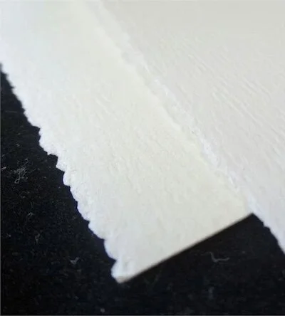 Jim gives a quick lecture about paper. Since paper is a primary substrate for printmaking, it is important to understand the variety of paper and how to prepare it for printing. Jim explains the pros and cons of the different papers and where they can be purchased. He also explains the stylistic differences between cutting paper and tearing paper. Cut paper leaves a clean edge, while torn paper leaves a “deckle” edge (a feathery, fibrous edge). Jim does a quick demonstration for each type, including how to tear with water to make organic shapes.