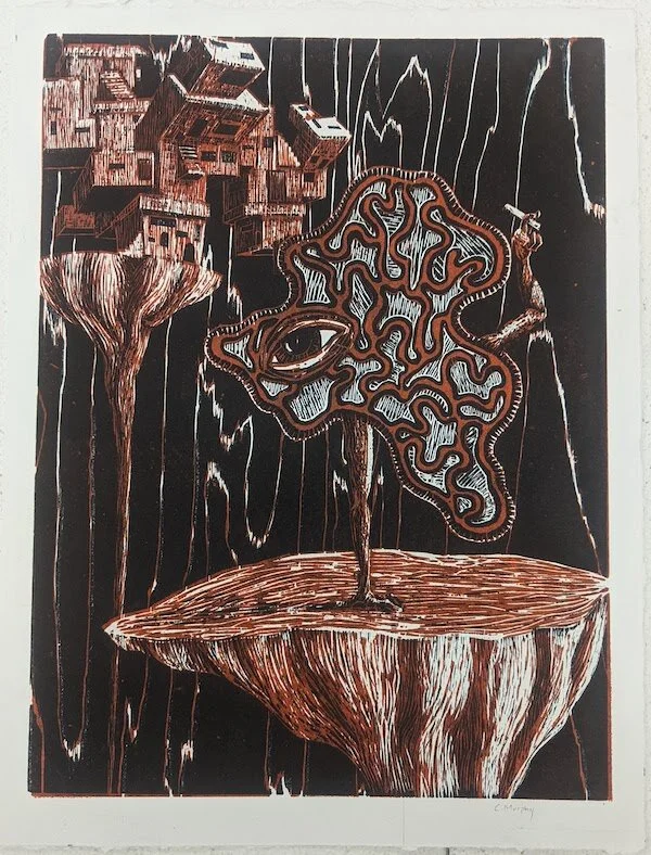 Reinaldo presents his work starting with his drawings and how he transitioned to relief printmaking while pursuing his MFA. He explains the themes present in his prints, such as memories and the experiences people have within that we normally can’t see. He then goes on to detail his experiences after school, including, how he was able to print without a studio, becoming involved in community projects and murals, teaching, and co-hosting a printmaking podcast (Pine.Copper.Lime.)